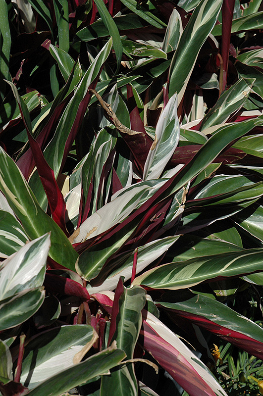 Tricolor Stromanthe's attractive large narrow leaves remain green in colour with showy creamy white variegation and tinges of dark red throughout the year on a plant with an upright spreading habit of growth.