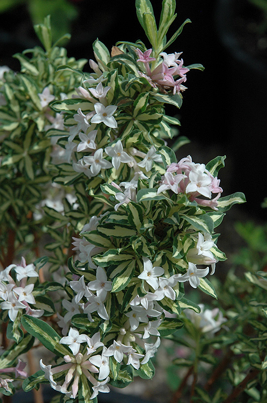 A superb garden shrub featuring extremely fragrant light pink to white flowers in spring and interesting variegated foliage; the fragrance is intoxicating; very finicky plant, needing light shade and well-drained soil; never move once established