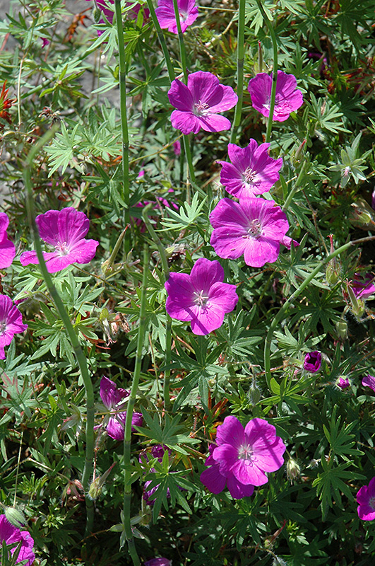 Perfect as a groundcover, this low mounded variety has small, deeply lobed leaves that turn crimson red in the fall; bathed in beautiful magenta saucer-shaped blooms throughout summer; deadhead spent flowers for reblooming later in the season