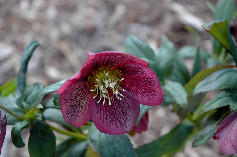 Grape Galaxy Hellebore will grow to be about 14 inches tall at maturity, with a spread of 24 inches. When grown in masses or used as a bedding plant, individual plants should be spaced approximately 18 inches apart. Its foliage tends to remain dense right to the ground, not requiring facer plants in front. It grows at a medium rate, and under ideal conditions can be expected to live for approximately 5 years. As an evegreen perennial, this plant will typically keep its form and foliage year-round.