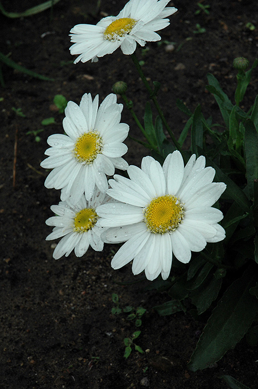An outstanding shasta daisy producing stunning, large semi-double white blooms with golden centers and drooping white rays; multiple blooms per stem; a beautiful addition to the garden when massed; blooms throughout the summer
