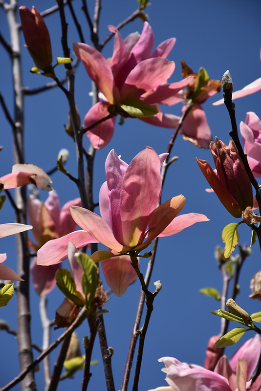 A beautiful magnolia whose large flowers are a stunning pastel pink; a small tree with a neat, columnar form and large relatively coarse leaves; flowers appear before the foliage and persist well; an ideal landscape or garden accent