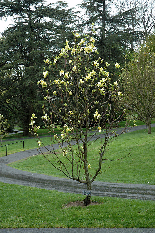 A stunning magnolia that produces luminous yellow-gold blooms; a small tree or large shrub with an upright columnar form and large relatively coarse leaves; flowers late, just as foliage appears; an ideal landscape or garden accent