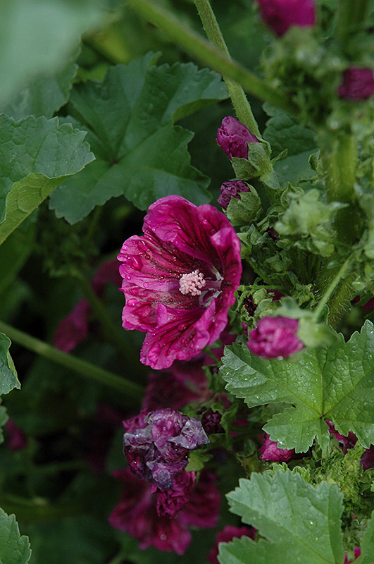 Purple Satin Mallow is an herbaceous perennial with a rigidly upright and towering form. Its relatively coarse texture can be used to stand it apart from other garden plants with finer foliage.