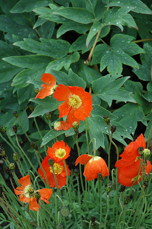 Summer Breeze Orange Poppy will grow to be about 8 inches tall at maturity extending to 15 inches tall with the flowers, with a spread of 8 inches. When grown in masses or used as a bedding plant, individual plants should be spaced approximately 6 inches apart. It grows at a fast rate, and under ideal conditions can be expected to live for approximately 3 years. As an herbaceous perennial, this plant will usually die back to the crown each winter, and will regrow from the base each spring. Be careful not to disturb the crown in late winter when it may not be readily seen! As this plant tends to go dormant in summer, it is best interplanted with late-season bloomers to hide the dying foliage.