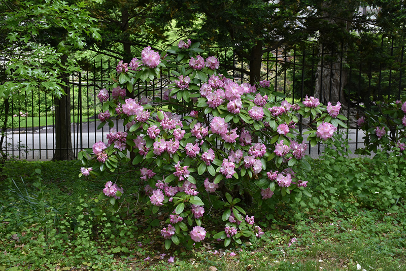 Wheatley Rhododendron will grow to be about 8 feet tall at maturity, with a spread of 7 feet. It tends to be a little leggy, with a typical clearance of 1 foot from the ground, and is suitable for planting under power lines. It grows at a slow rate, and under ideal conditions can be expected to live for 40 years or more.
