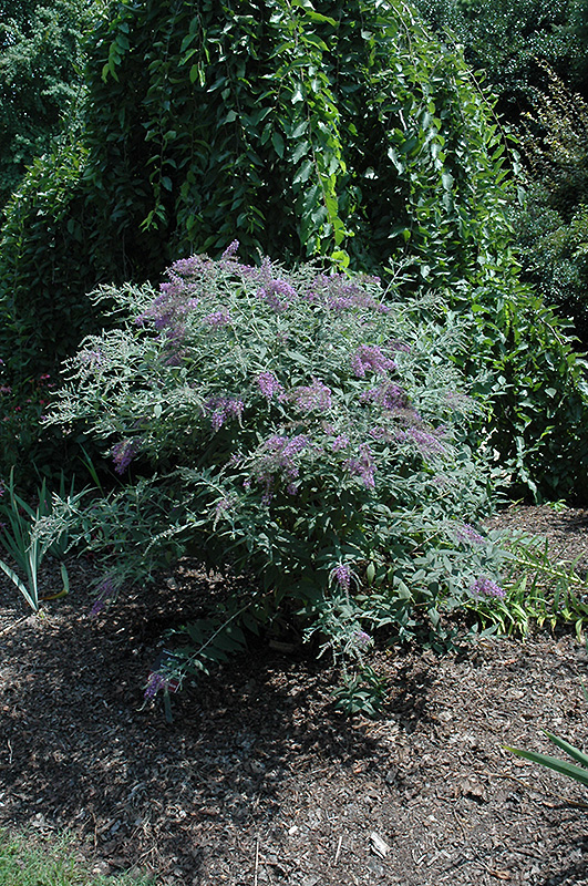 An upright, compact garden plant with showy lilac-purple flowers in summer, over frosty green foliage; attracts butterflies; may treat as a perennial and cut it back to the ground each spring as it regrows vigorously and blooms on new wood
