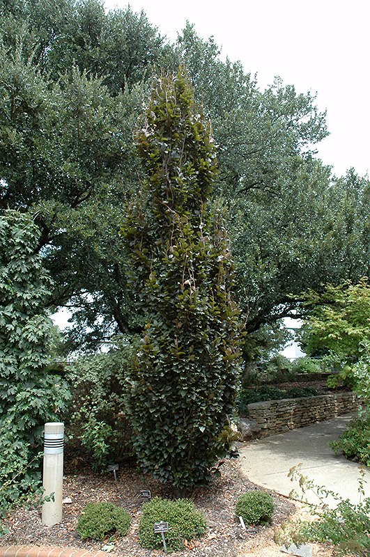 A narrow, columnar tree with copper new foliage that matures to reddish-brown, becoming purplish in fall; excellent for color, articulation or as a tall screen; quite particular about growing conditions, requires rich soil and significant moisture