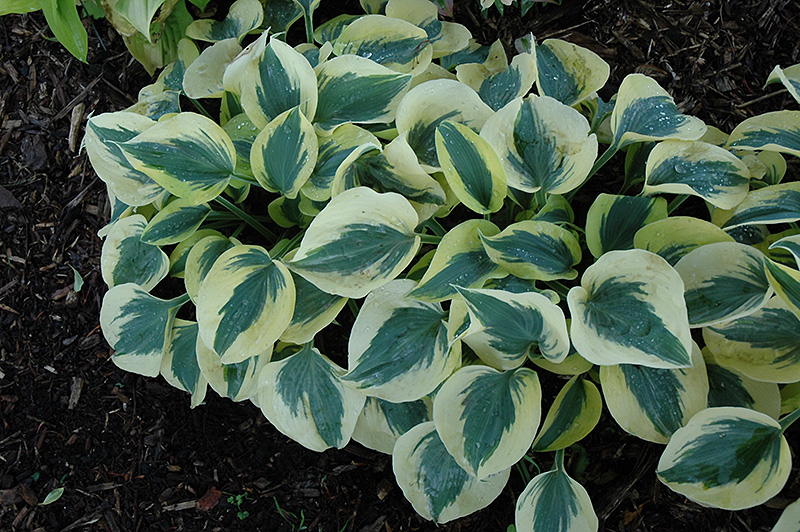 Amber Frost Hosta will grow to be about 12 inches tall at maturity extending to 18 inches tall with the flowers, with a spread of 24 inches. When grown in masses or used as a bedding plant, individual plants should be spaced approximately 20 inches apart. Its foliage tends to remain dense right to the ground, not requiring facer plants in front. It grows at a medium rate, and under ideal conditions can be expected to live for approximately 10 years. As an herbaceous perennial, this plant will usually die back to the crown each winter, and will regrow from the base each spring. Be careful not to disturb the crown in late winter when it may not be readily seen!