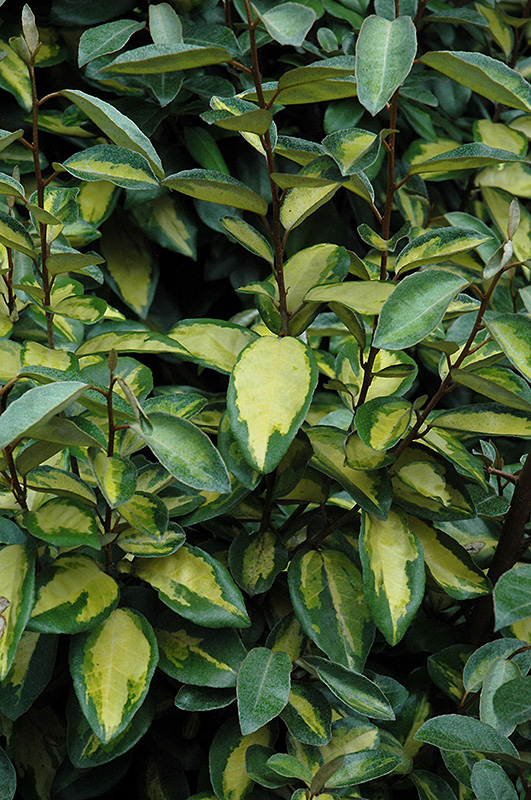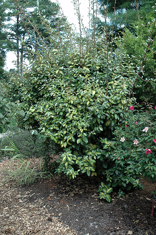 A large and dense evergreen shrub with glossy leaves mottled in shades of green, gold and chartreuse; subtle, creamy white flower clusters in fall have a wonderful fragrance; a great landscape shrub that can be maintained as a screen or hedge