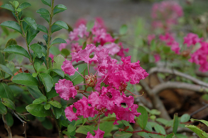 Rosey Carpet Crapemyrtle makes a fine choice for the outdoor landscape, but it is also well-suited for use in outdoor pots and containers. Because of its spreading habit of growth, it is ideally suited for use as a 'spiller' in the 'spiller-thriller-filler' container combination; plant it near the edges where it can spill gracefully over the pot. Note that when grown in a container, it may not perform exactly as indicated on the tag - this is to be expected. Also note that when growing plants in outdoor containers and baskets, they may require more frequent waterings than they would in the yard or garden. Be aware that in our climate, most plants cannot be expected to survive the winter if left in containers outdoors, and this plant is no exception. Contact our experts for more information on how to protect it over the winter months.