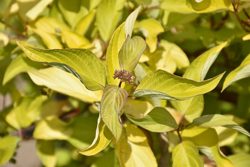 Morden Amber Dogwood has attractive yellow deciduous foliage on a plant with a round habit of growth. The pointy leaves are highly ornamental and turn an outstanding gold in the fall. It has clusters of creamy white flowers at the ends of the branches in late spring. It produces white berries in mid summer. The red branches are extremely showy and add significant winter interest.