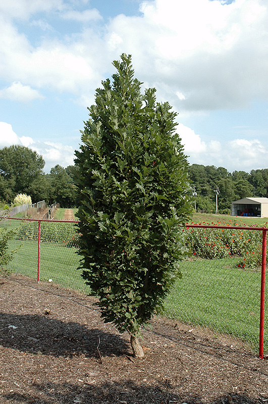 Chimney Fire Oak is primarily valued in the landscape for its rigidly columnar form. It has attractive dark green foliage with silver undersides. The large lobed leaves are highly ornamental and turn an outstanding red in the fall. However, the fruit can be messy in the landscape and may require occasional clean-up.