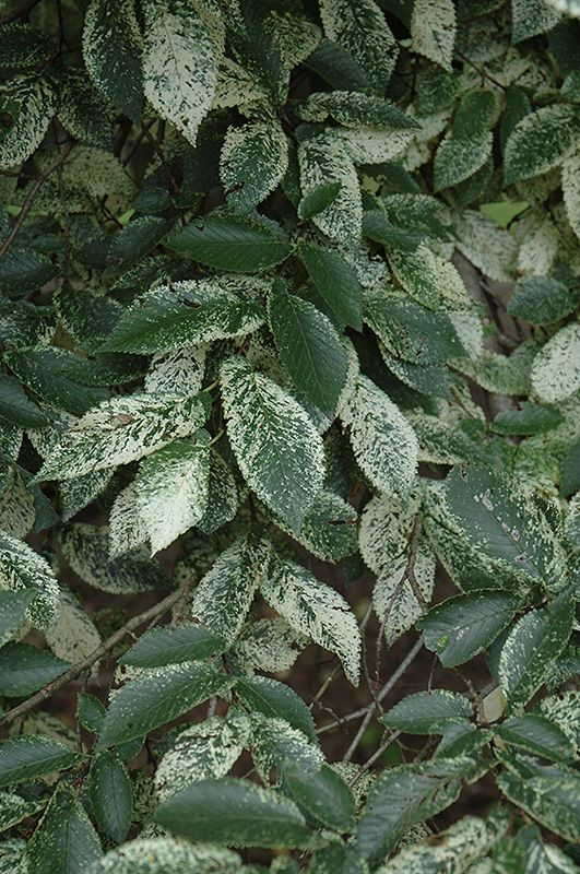 A beautiful shade or street tree for distinguished landscapes, producing stunning dark green foliage that is streaked and spotted in white, on an upright habit with a spreading canopy; susceptible to Dutch Elm Disease