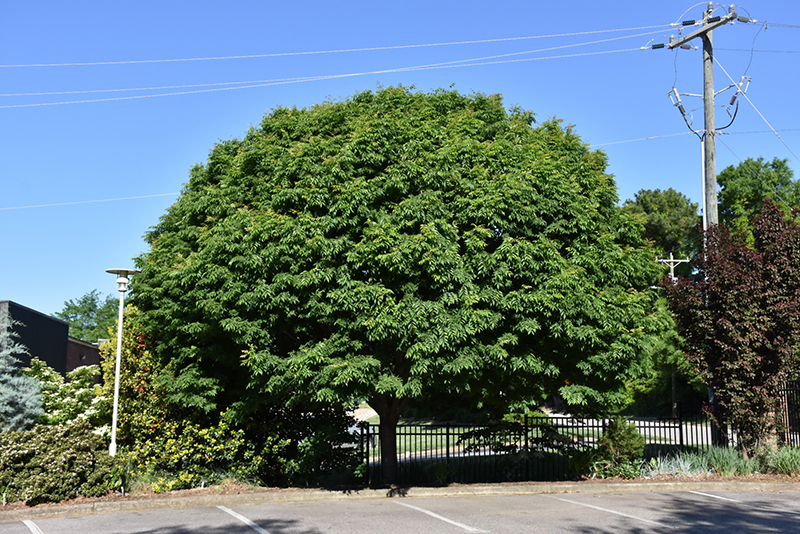 A close relative of the elm; a compact, dense, semi-dwarf shade tree with a shapely, rounded habit, interesting peeling bark and good fall color; quite hardy, low maintenance and trouble-free, an excellent choice for smaller urban spaces
