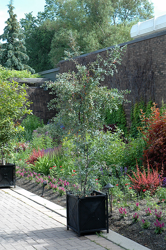 Silver Drop Cider Gum makes a fine choice for the outdoor landscape, but it is also well-suited for use in outdoor pots and containers. With its upright habit of growth, it is best suited for use as a 'thriller' in the 'spiller-thriller-filler' container combination; plant it near the center of the pot, surrounded by smaller plants and those that spill over the edges. It is even sizeable enough that it can be grown alone in a suitable container. Note that when grown in a container, it may not perform exactly as indicated on the tag - this is to be expected. Also note that when growing plants in outdoor containers and baskets, they may require more frequent waterings than they would in the yard or garden. Be aware that in our climate, most plants cannot be expected to survive the winter if left in containers outdoors, and this plant is no exception. Contact our experts for more information on how to protect it over the winter months.