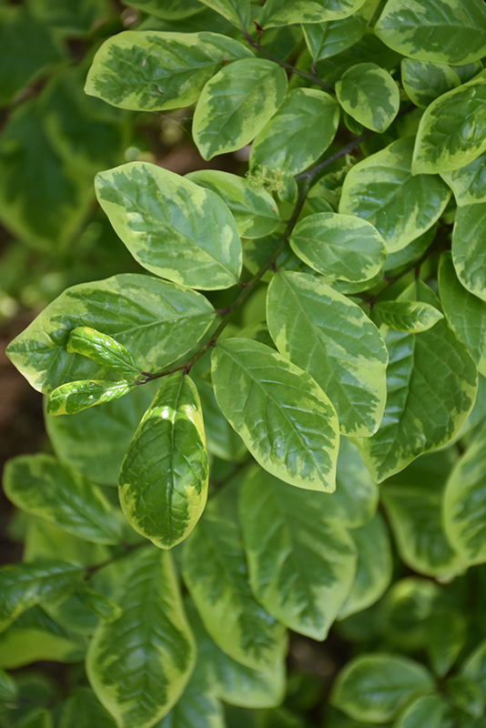 Pearl Frost Orixa has attractive white-variegated green foliage which emerges buttery yellow in spring on a plant with an upright spreading habit of growth. The fragrant oval leaves are highly ornamental and turn an outstanding yellow in the fall. The smooth tan bark and dark red branches add an interesting dimension to the landscape.