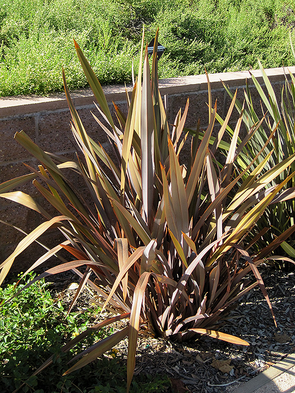 Dusky Chief New Zealand Flax will grow to be about 6 feet tall at maturity, with a spread of 4 feet. When grown in masses or used as a bedding plant, individual plants should be spaced approximately 4 feet apart. Although it's not a true annual, this plant can be expected to behave as an annual in our climate if left outdoors over the winter, usually needing replacement the following year. As such, gardeners should take into consideration that it will perform differently than it would in its native habitat.