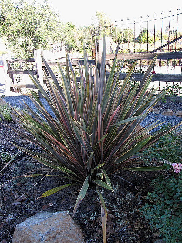 Rainbow Sunrise New Zealand Flax will grow to be about 5 feet tall at maturity, with a spread of 5 feet. When grown in masses or used as a bedding plant, individual plants should be spaced approximately 4 feet apart. Although it's not a true annual, this plant can be expected to behave as an annual in our climate if left outdoors over the winter, usually needing replacement the following year. As such, gardeners should take into consideration that it will perform differently than it would in its native habitat.