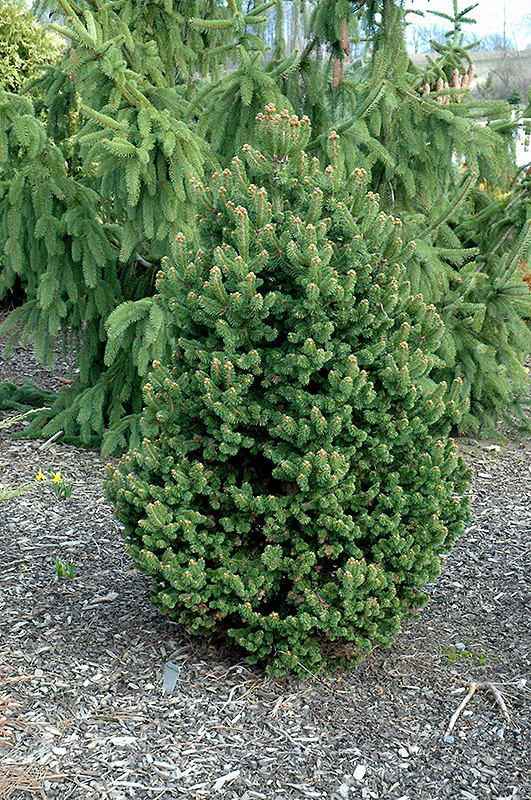 Emsland Norway Spruce is a dwarf conifer which is primarily valued in the landscape or garden for its decidedly oval form. It has rich green evergreen foliage which emerges light green in spring. The needles remain green throughout the winter.