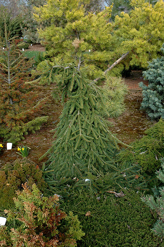 Farnsburg Norway Spruce is a dwarf conifer which is primarily valued in the landscape or garden for its highly ornamental weeping form. It has rich green evergreen foliage. The needles remain green throughout the winter.