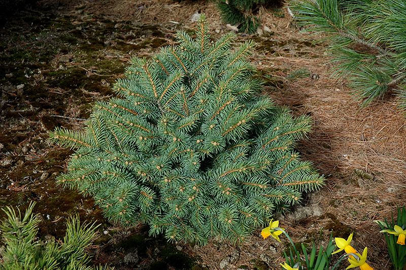 Freeport Colorado Spruce is a dwarf conifer which is primarily valued in the garden for its ornamental globe-shaped form. It has attractive powder blue evergreen foliage. The needles are highly ornamental and remain powder blue throughout the winter.