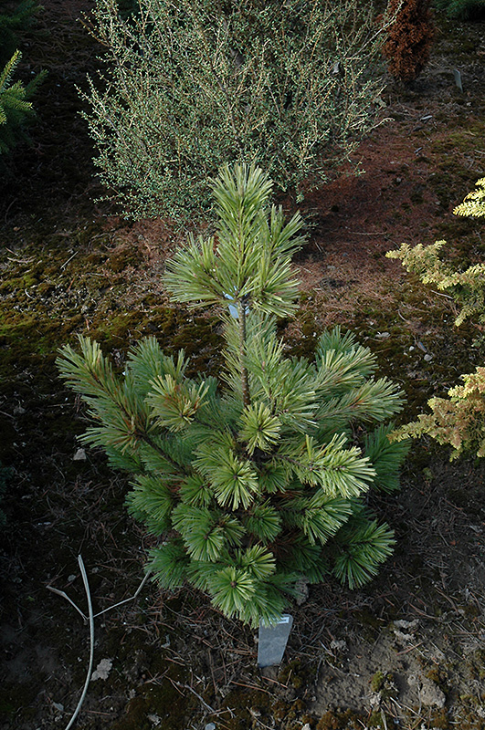 A stately upright pine with dense branching and soft gray-green needles; its tightly columnar habit creates a visual excamation point; a beautiful accent tree for the home landscape