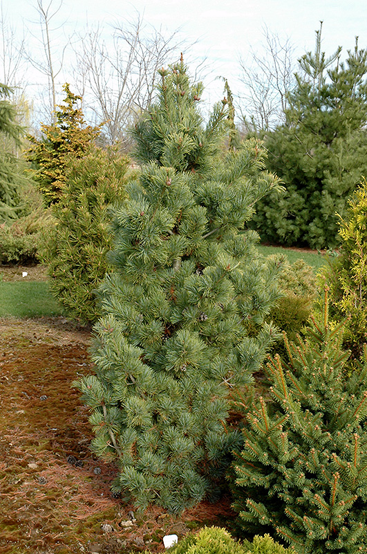 Gimborn's Pyramid Japanese White Pine is a dwarf conifer which is primarily valued in the landscape or garden for its distinctively pyramidal habit of growth. It has attractive bluish-green evergreen foliage. The needles are highly ornamental and remain bluish-green throughout the winter.