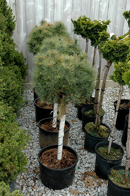 Sea Urchin White Pine (tree form) is primarily valued in the landscape or garden for its highly ornamental lollipop-like shape. It has attractive silvery blue evergreen foliage. The needles are highly ornamental and remain silvery blue throughout the winter.