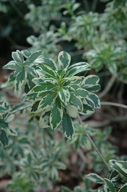 A beautiful variegated variety that may eventually reach ten feet high without pruning; emerging foliage is yellow gold, maturing to dark green with white variegation; perfect for a hedge or screen