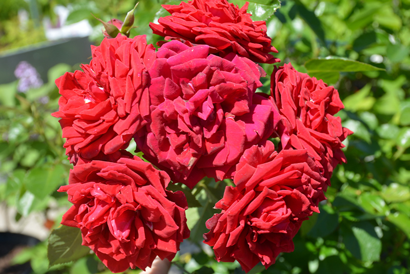Clusters of velvety red, large ruffled blooms against the shiny, deep green foliage for a visually stunning display; strong stems are perfect for cutting; this vigorous, bushy plant has very good disease resistance