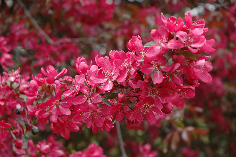 Burgundy Flowering Crab is a deciduous tree with an upright spreading habit of growth. Its average texture blends into the landscape, but can be balanced by one or two finer or coarser trees or shrubs for an effective composition.