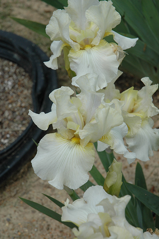 This impressive tall iris produces elegant pale blue blooms with ruffled white falls, and silver-blue tipped beards; re-blooming; a stunning addition to the perennial border; excellent massed in groupings in the garden; will quickly form dense colonies