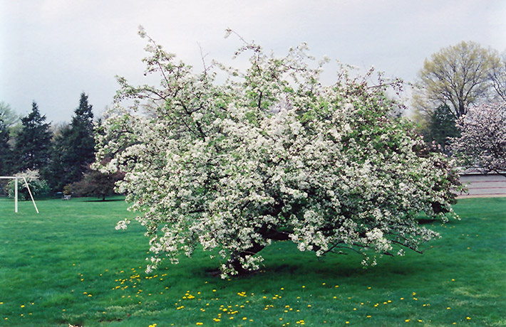 A stunning feature tree with pink buds that open to attractive white flowers in spring, persistent orange-yellow fruit in fall, extremely showy in bloom; the ideal ornamental accent for the front yard, needs well-drained soil and full sun