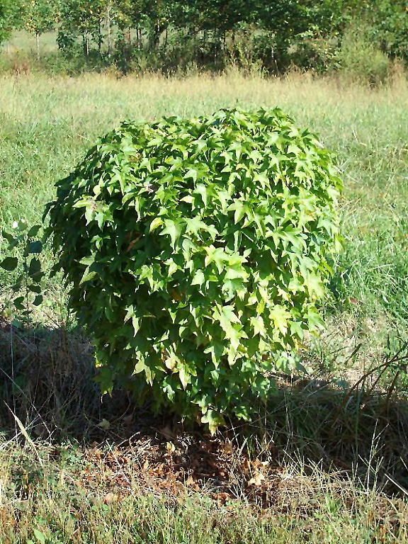 A shrubby, seedless version of the species with interestingly shaped leaves that turn deep red in fall; somewhat particular about growing conditions; an ideal size for garden use or the smaller landscape
