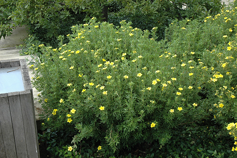 A compact mounded shrub with sunny yellow flowers on and off from June until frost and fine textured foliage; the ultimate flowering shrub for northern gardens, hardy, tough and adaptable to all conditions, but dislikes wet soils