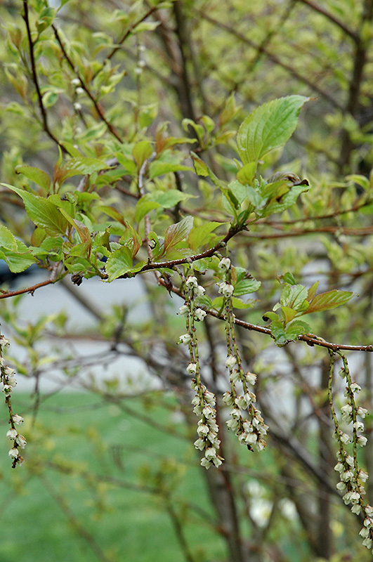 Variegated Golden Spiketail is bathed in stunning racemes of creamy white bell-shaped flowers with chartreuse overtones hanging below the branches from early to mid spring before the leaves. It has attractive yellow-variegated dark green foliage. The oval leaves are highly ornamental but do not develop any appreciable fall colour. The smooth brown bark adds an interesting dimension to the landscape.