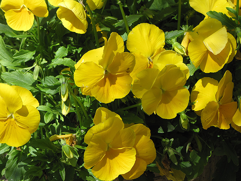 Venus Yellow Pansy has masses of beautiful yellow flowers with white eyes at the ends of the stems from early spring to late fall, which are most effective when planted in groupings. Its serrated round leaves remain dark green in colour throughout the season.
