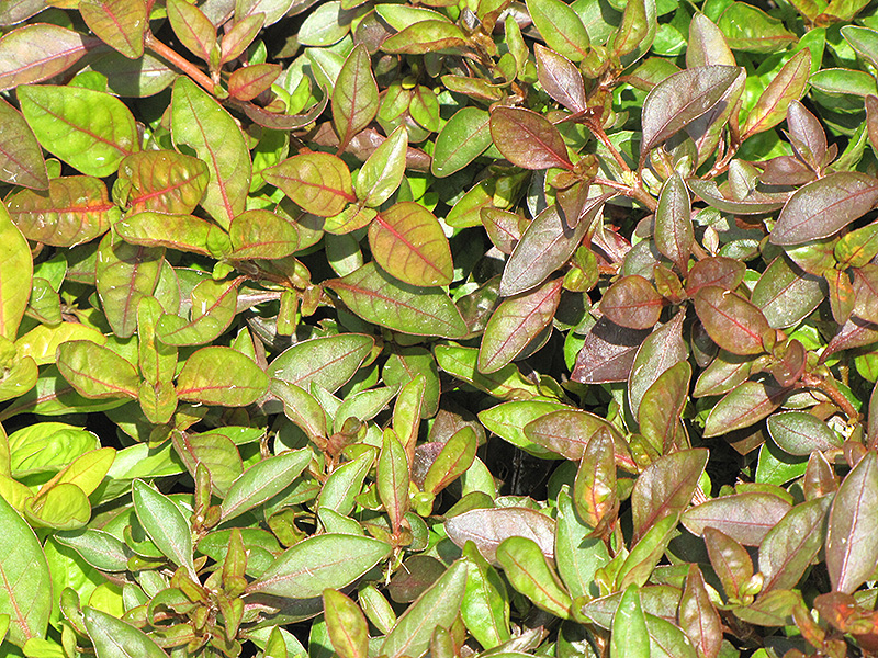 A mounding, dense plant presenting yellow-green emerging leaves that mature to glossy green and burgundy; small white flowers in summer; best color in full sun; great in containers or as an accent groundcover