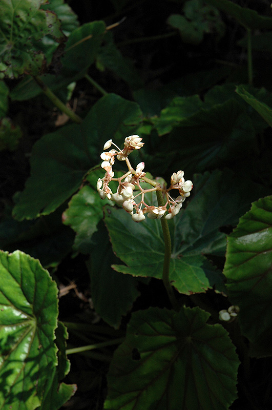 An outstanding begonia with huge, rounded glossy green leaves for a visual impact in the garden; clusters of cream blooms rise above the foliage in late winter into spring; grows well in humid conditions and can get quite large in frost free climates