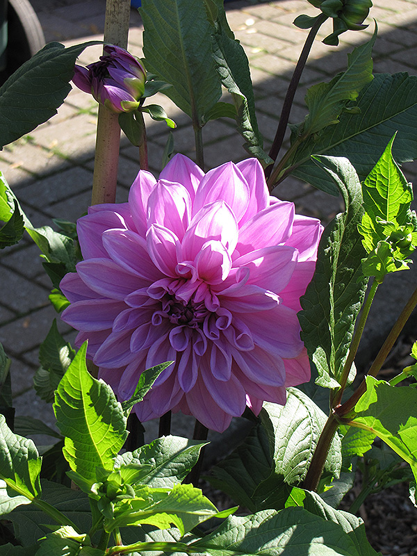 This lovely dahlia is a prolific bloomer, producing very large lilac colored flowers for a long period, beginning in mid summer; wonderful along borders or in containers; not frost hardy