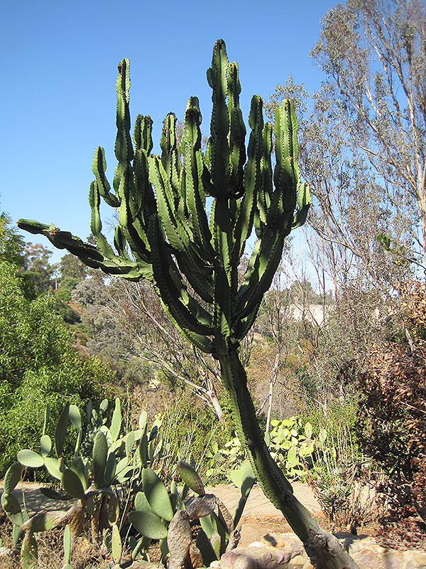 African Candelabra is an open multi-stemmed evergreen shrub with an upright spreading habit of growth. Its relatively coarse texture can be used to stand it apart from other landscape plants with finer foliage.