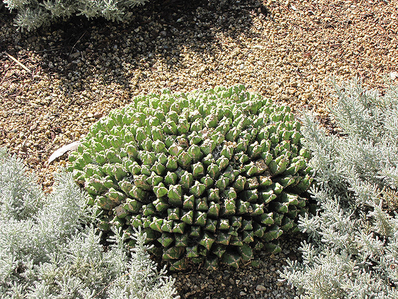 A low, densely mounded succulent that spreads quite rapidly by suckering; small yellow flowers appear along the stem margins in late winter and early spring; an interesting groundcover or edging plant for a dry sunny area