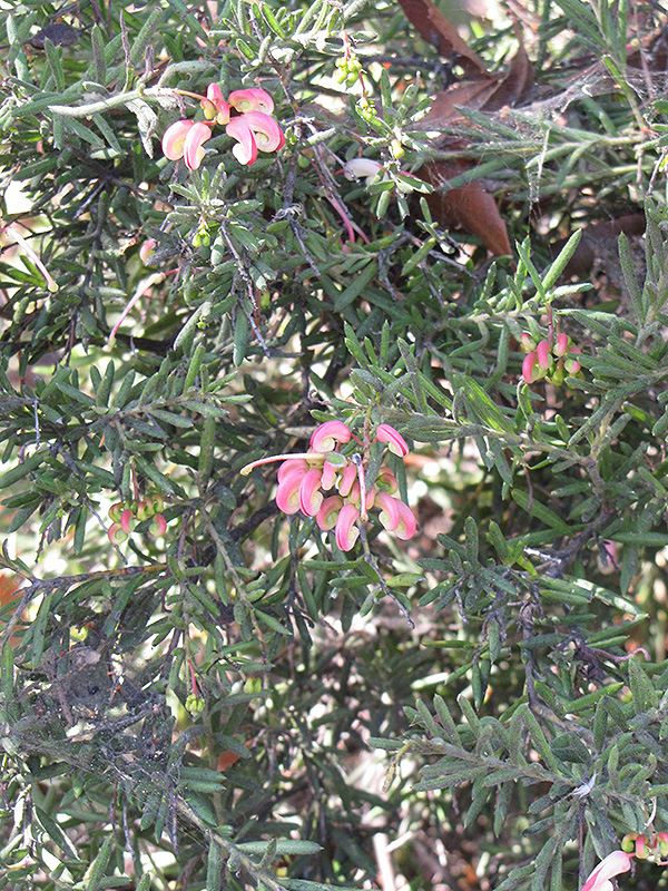 Rosemary Grevillea features delicate pink spider-like flowers with white overtones along the branches from late winter to early summer. It has attractive dark green evergreen foliage. The fuzzy narrow leaves are highly ornamental and remain dark green throughout the winter.
