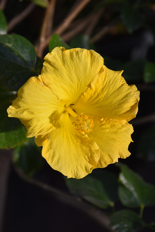 Yellow Hibiscus features bold yellow round flowers at the ends of the branches from mid summer to early fall. Its glossy pointy leaves remain dark green in colour throughout the year.