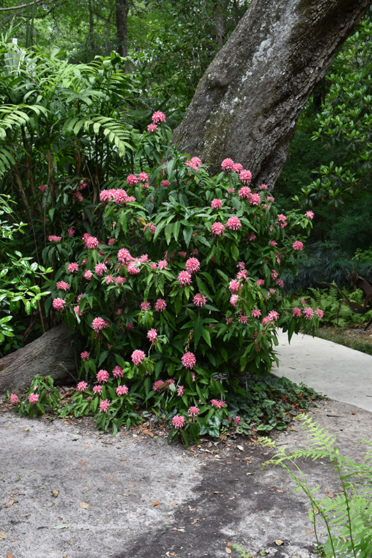 Brazilian Plume Flower features showy clusters of pink tubular flowers at the ends of the branches from mid spring to mid fall. Its attractive large textured oval leaves remain dark green in colour throughout the year.