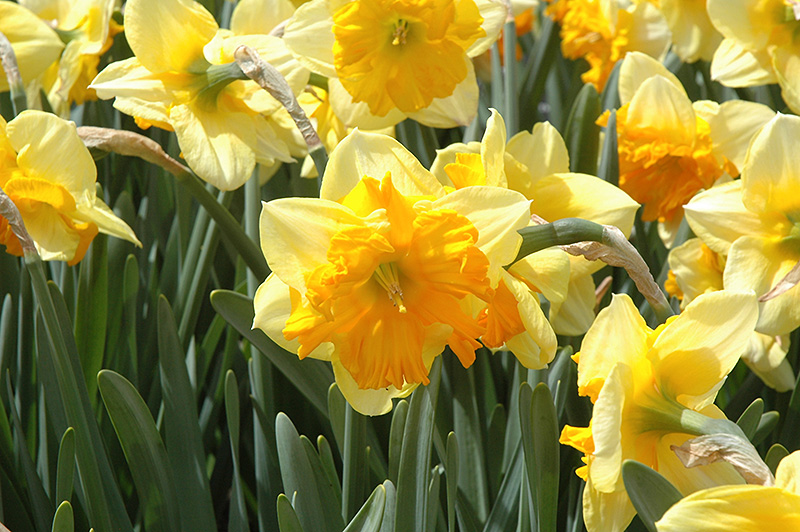 Mondragon Daffodil will grow to be about 16 inches tall at maturity, with a spread of 12 inches. When grown in masses or used as a bedding plant, individual plants should be spaced approximately 6 inches apart. It grows at a medium rate, and under ideal conditions can be expected to live for approximately 10 years. As an herbaceous perennial, this plant will usually die back to the crown each winter, and will regrow from the base each spring. Be careful not to disturb the crown in late winter when it may not be readily seen! As this plant tends to go dormant in summer, it is best interplanted with late-season bloomers to hide the dying foliage.