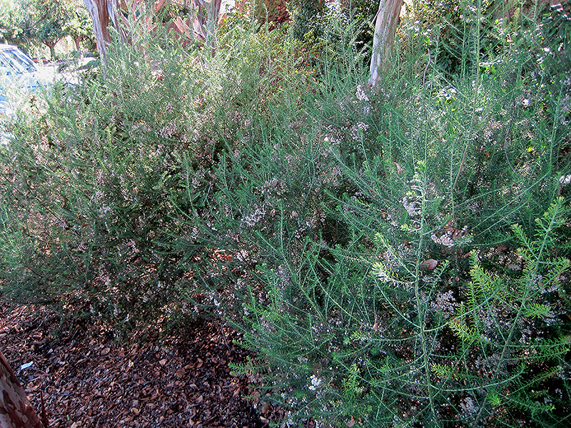 An airy evergreen shrub that produces fine, aromatic, dark green needle-like foliage topped with long lasting clusters of white flowers all season; pinch back frequently when young to maintain shape; drought tolerant once established