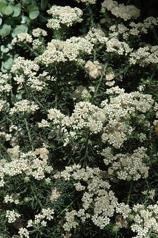 An airy evergreen shrub that produces fine, aromatic, dark green needle-like foliage topped with long lasting clusters of white flowers all season; pinch back frequently when young to maintain shape; drought tolerant once established