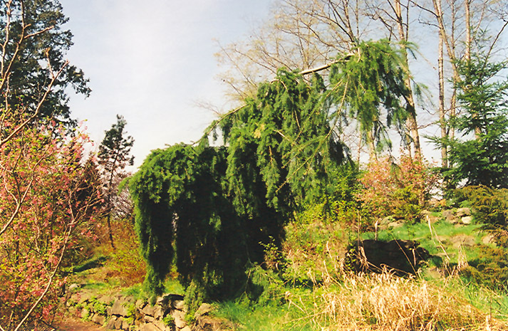 Weeping Douglas Fir is primarily valued in the landscape for its distinctively pyramidal habit of growth. It has attractive bluish-green evergreen foliage. The needles are highly ornamental and remain bluish-green throughout the winter.